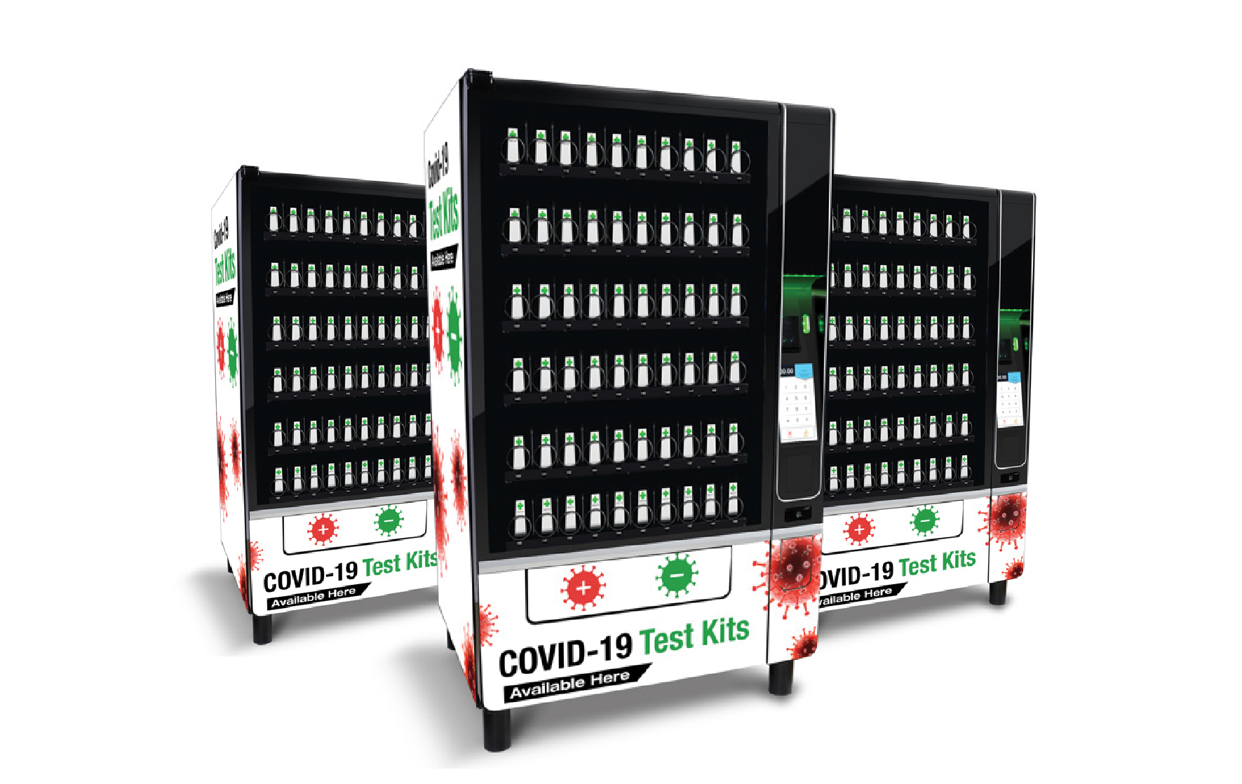 Provide easy and fast access to self-administered, rapid COVID-19 Kits conveniently on your campus or at your workplace. Our COVID-19 Kit Machines minimize wait times, reduce the load on healthcare professionals, and offer a safe and convenient humanless transaction.
