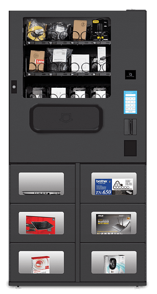 The Combo Machine has up to 30 unique product selections with a capacity of over 500 products (varies based upon product configuration). In addition, the Combo Machine has six secure locker compartments that can be customized for greater product flexibility and offers increased capacity for larger items.