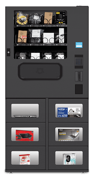 The Combo Machine features the ability to dispense both large and small items within one compact vending machine. The Combo Vending Machine gives managers the ability to track and manage inventory effectively and efficiently. With its robust cloud-based technology software, iQ Technology, the Combo Machine is the optimal choice for incorporating secure inventory control in locations with space constraints or a limited number of users
